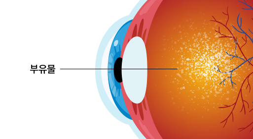 액체화되면서 유리체 조각, 적혈구 등이 액화된 유리체 속에 떠다니게 되는 데 유리체 혼탁 부위나 각종